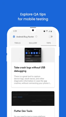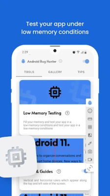 Perform low memory tests, align components, check colors, measure layouts, compare mockups, capture screenshots, record videos, and simplify bug reporting. Android Bug Hunter is an all-in-one powerful app testing companion.