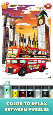 Clear the over 2000 puzzle stages of Critter Crew to collect artwork of the crew's worldwide journey! Paint the color into their story!