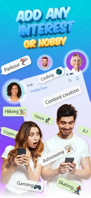 Hobbytwin is your hobbies social network, designed to help you find people with similar interests nearby and form real, lasting friendships. We've thrown out the awkward swiping and endless, pointless chats. Here, the connection starts with a spark—a hobby you both love. Whether you’re into gaming, playing music, hiking, or digital art, just add any fun skill, sport, or interest you can think of.