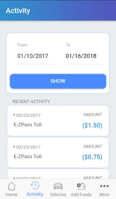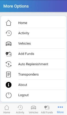 * Check your balance * Edit registered vehicles * View your toll history
