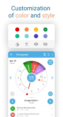 ✔ Time management using GTD technology. Is planning your day confusing? With the function of striking out or hiding flagged events, keep your chart as clean as possible. Sectograph will improve your time management.